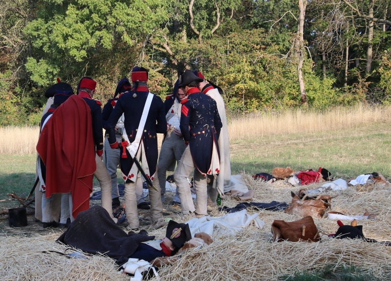 Sergent Rôtisseur und die Grenadiere Sans-Souci, Champagne, Pas Perdu, Trompelamort, Belle-Humeur, Lefèvre und L'Agitateur vereinigten sich in Leipzig, um die Nation gegen ihre Feinde zu verteidigen. Lefèvre und L'Agitateur konnten leider nur am Samstag tagsüber am Dienst teilnehmen. Wir bildeten ein gemeinsames Peloton mit vier Füsilieren des 7e de ligne, einem Füsilier des 33e de ligne und sechs Füsilieren des 85e de ligne, während des Gefechtes stießen noch fünf Mann des 12e de ligne dazu. Caporal Père Fabius war detachiert, wir sahen ihn aber zu unserer Freude als unseren Bataillons-Komandeur wieder. Grenadier Le Peintre war ebenfalls detachiert, als Tambour beim 18e de ligne.